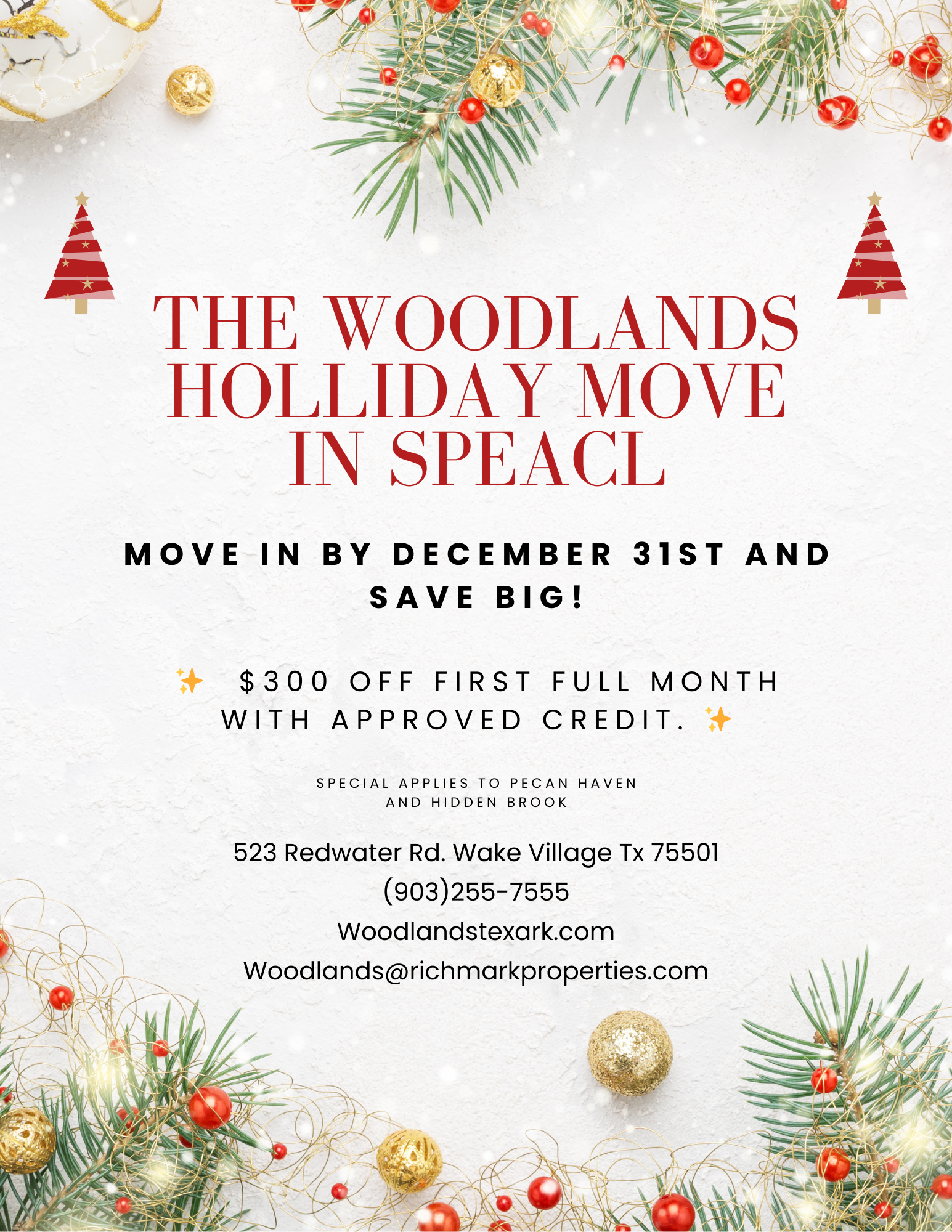 Welcome to The Woodlands in Wake Village, Texas! Located just minutes from major highways, you'll enjoy a hassle-free commute to nearby Texarkana and beyond. Our community provides easy access to numerous dining, shopping, and entertainment options. If location and convenience are essential, The Woodlands is the perfect place to call home.